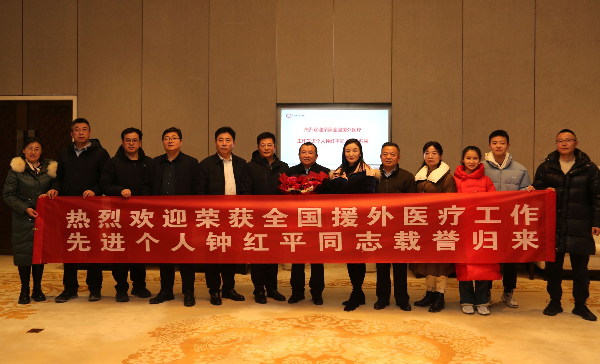 本网讯 12月29日,中国援外医疗队派遣60周年纪念暨表彰大会在京举行。中共中央总书记、国家主席、中央军委主席习近平亲切会见会议代表,向他们表示热烈祝贺,并向正在和曾经执行援外医疗任务的同志们致以诚挚慰问。大会表彰了30个全国援外医疗工作先进集体和60名先进个人。12月30日,全国援外医疗工作先进个人、陕西省第9批援马拉维医疗队队长、延大附院儿科副主任钟红平主任医师援外归来,米兰党委副书记杨伟宏带队赴机场迎接。