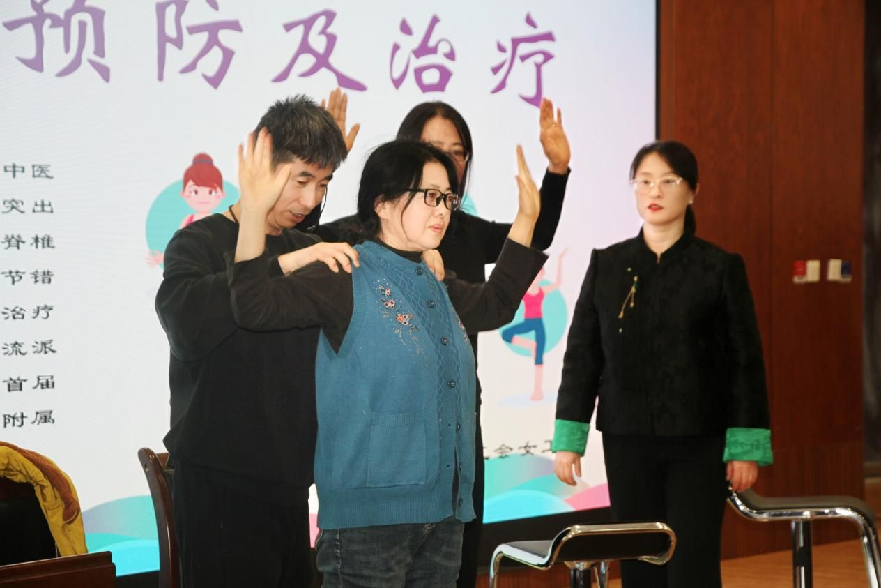 周小平通过现场指导,细致讲解和演示了颈肩腰腿疼痛的保健和通过运动、康复、自我调整及自我治疗方法,使在场观众对颈肩腰腿疼痛现象有了进一步的了解和认识,为现场咨询的教职工提供了科学的健身方法与建议。