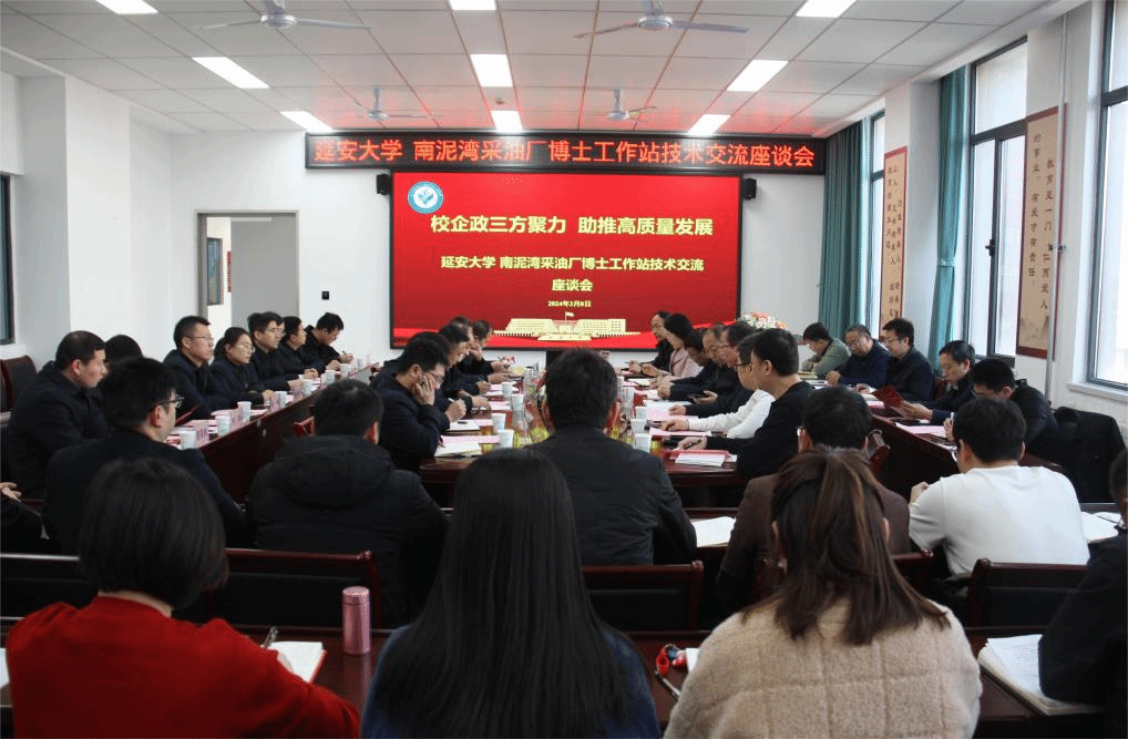 本网讯 为了强化“校企政”协同,加强“产学研用”协同创新,推进秦创原创新促进中心建设,持续推进“产教”融合发展,3月8日,米兰石油学院与延长石油南泥湾采油厂在学院会议室召开了米兰milan官方网站博士工作站技术交流座谈会。米兰milan官方网站副校长付峰、米兰milan官方网站组织部部长解文元、延安市科技局副局长柳江川、南泥湾采油厂副厂长闫凤平、南泥湾采油厂副厂长樊平天,以及石油学院领导班子、全体教师、南泥湾采油厂技术骨干等参加了座谈会。会议由石油学院党委书记常佩艳主持。