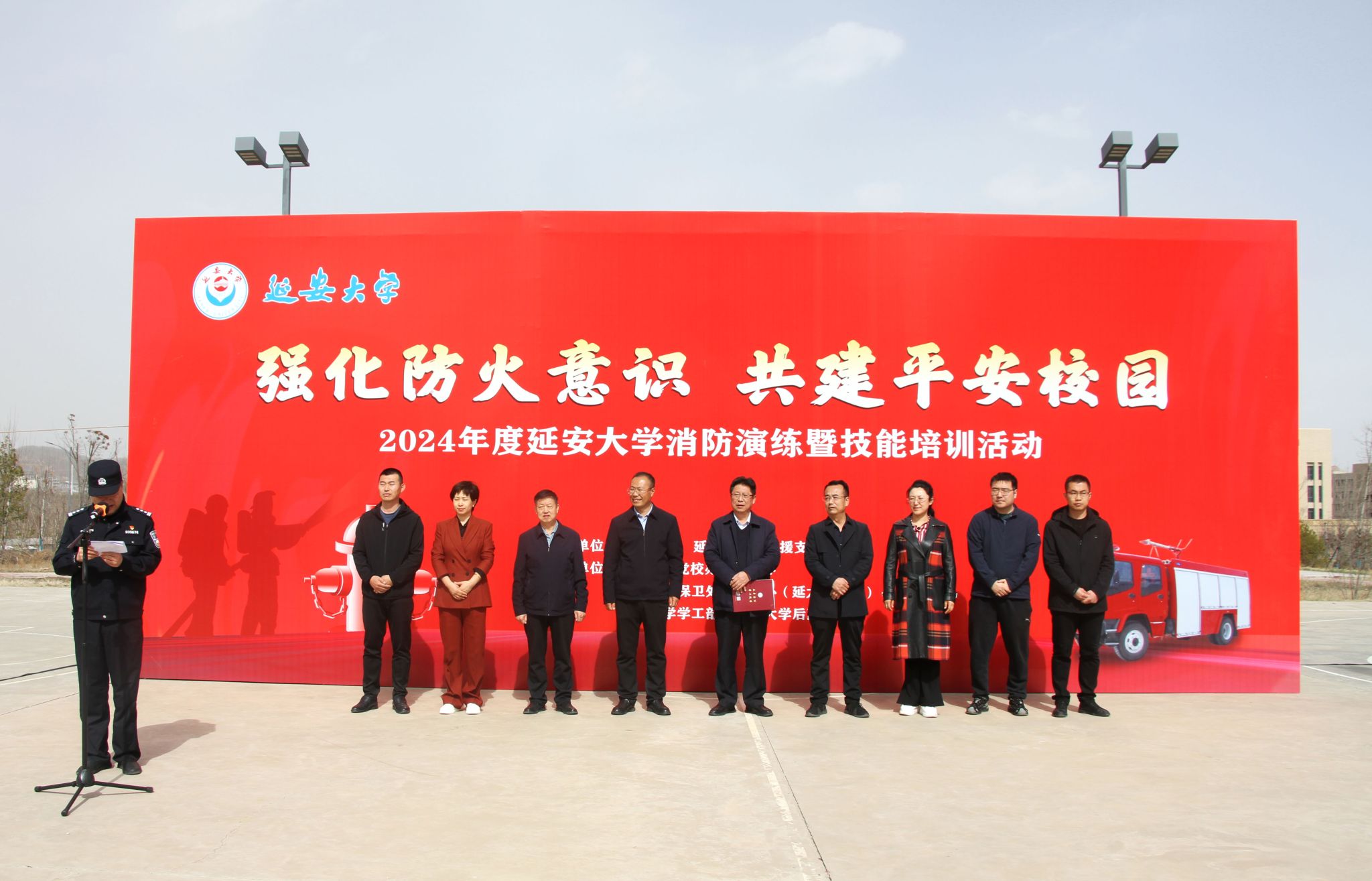 本网讯 为进一步提升米兰师生的消防安全意识,加强消防安全防范和应急处置能力,推进平安校园建设,3月27日下午,米兰在新城校区南区5号公寓楼北侧篮球场开展“强化防火意识 共建平安校园”消防演练暨技能培训活动。校党委委员、副校长吕达,延安市新区消防救援大队鲁艺消防救援站副站长陈智炜,有关职能部门负责人,各学院副书记、辅导员以及学生代表1000余人参加此次活动。活动由保卫处处长黄毅主持。