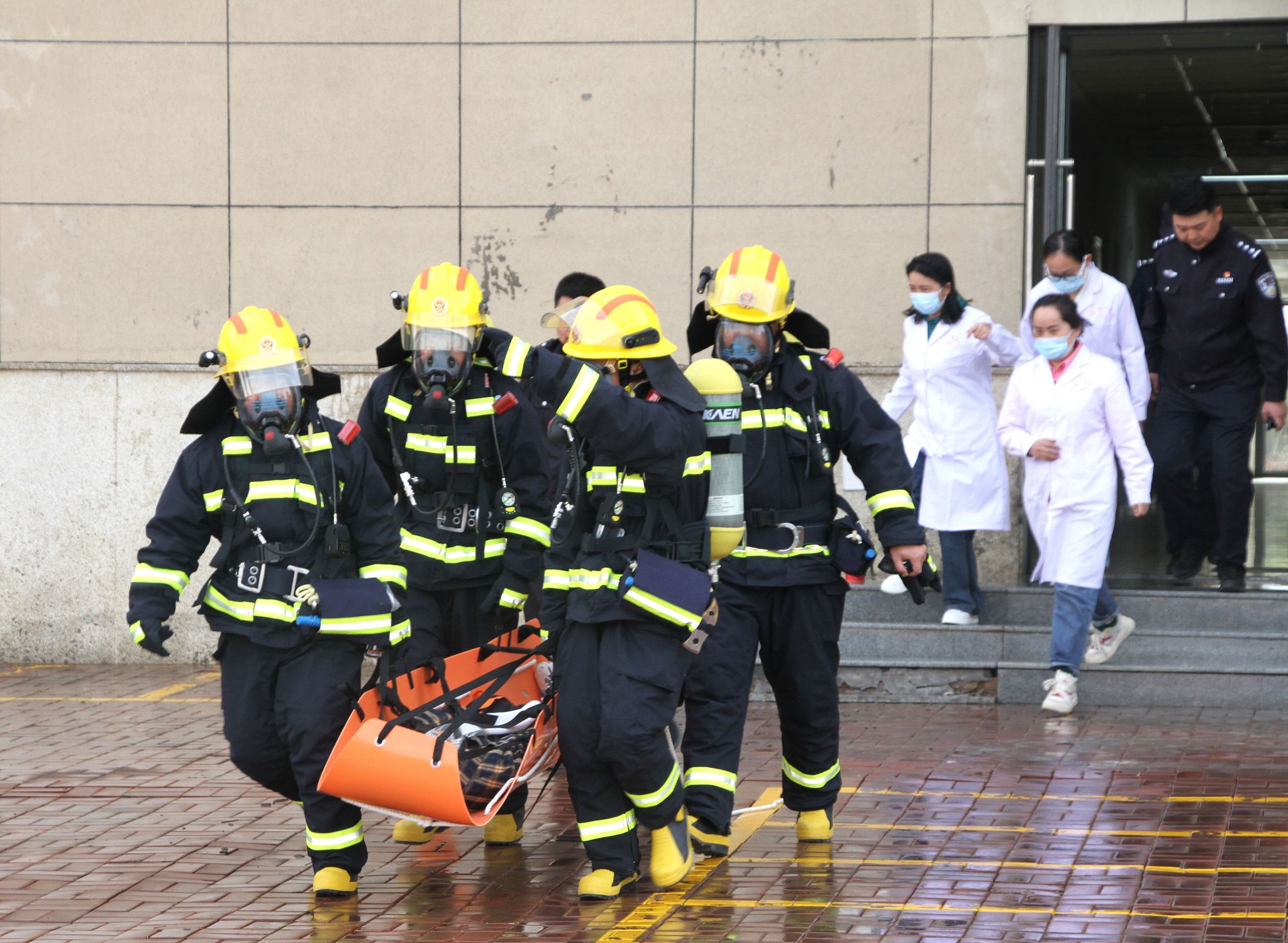 此次演练坚持实战导向,模拟学生宿舍楼突发火情、有人员被困的情景,设置紧急疏散逃生、消防人员对火灾扑救、营救被困人员等演练科目。