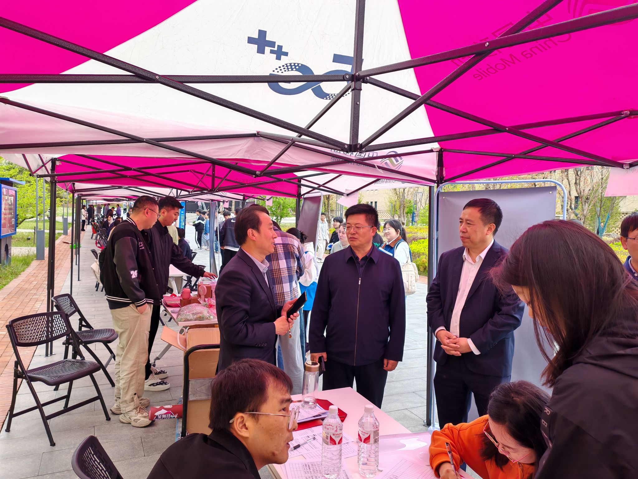 招聘会期间,校长奚家米,校党委副书记杨伟宏,统战部、学工部、校团委和部分学院负责人深入会场,与用人单位代表亲切交流,了解各单位岗位需求、招聘要求和薪资待遇等。在与学工干部交流中,奚家米强调,要强化就业育人,引导鼓励毕业生到基层企业就业,要进一步加强就业市场建设,提升访企精准度和实效性,持续开展校园招聘活动,促进毕业生更加充分就业。杨伟宏要求学工部和各学院,通力合作,抢抓毕业生离校前关键期,扎实开展就业指导,用心做好就业服务,确保2024届毕业生就业大局稳定。