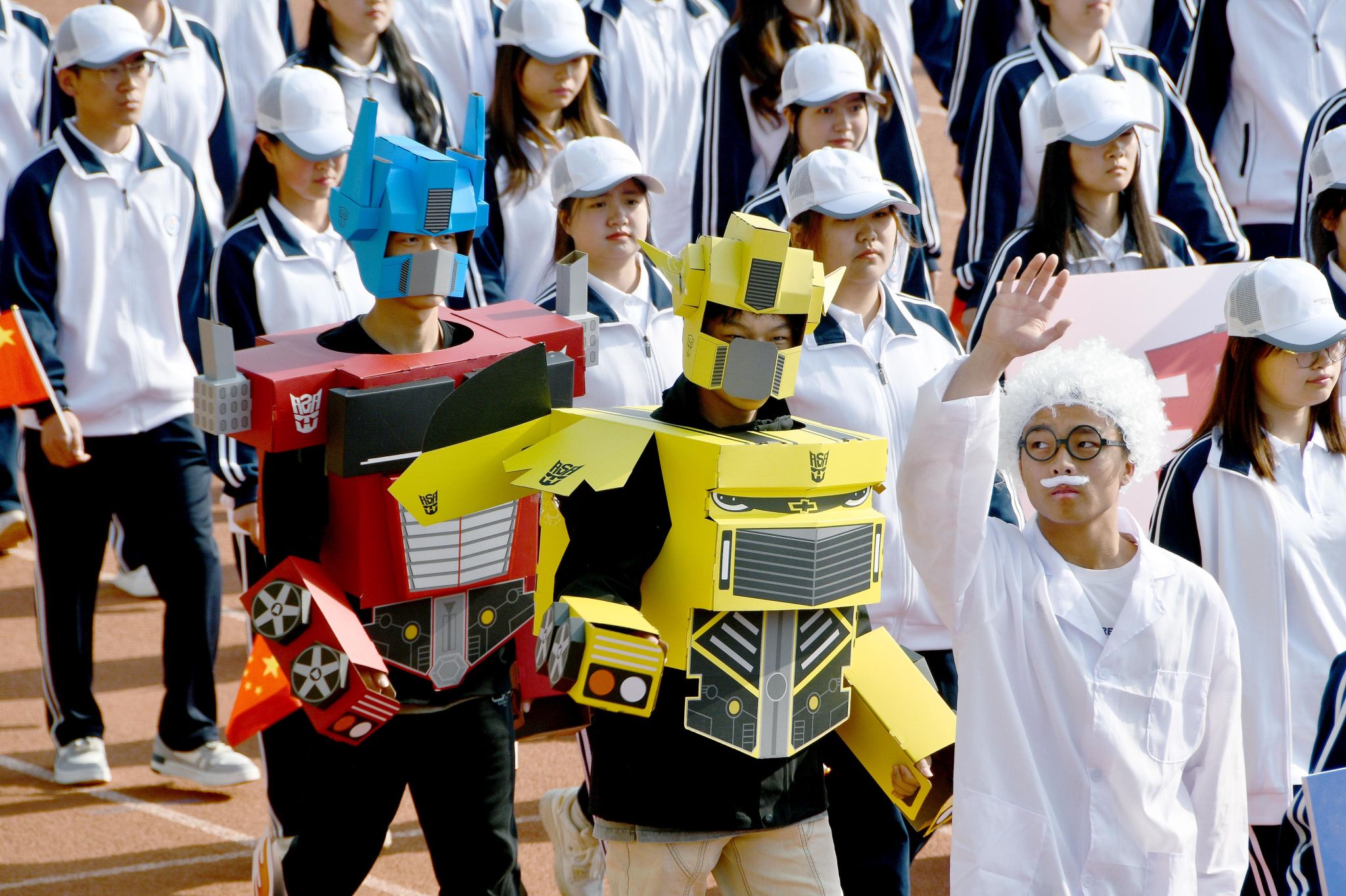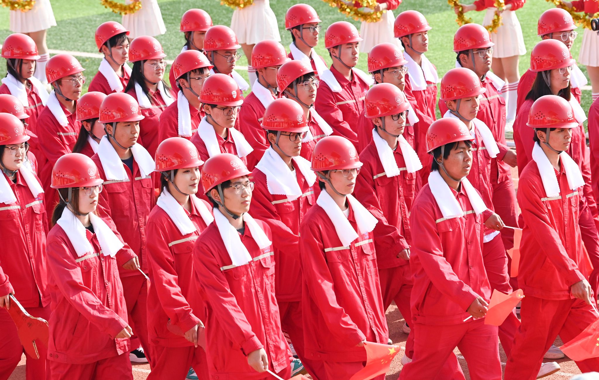 文体表演结束后,高子伟书记宣布第四十五届运动会比赛开始。