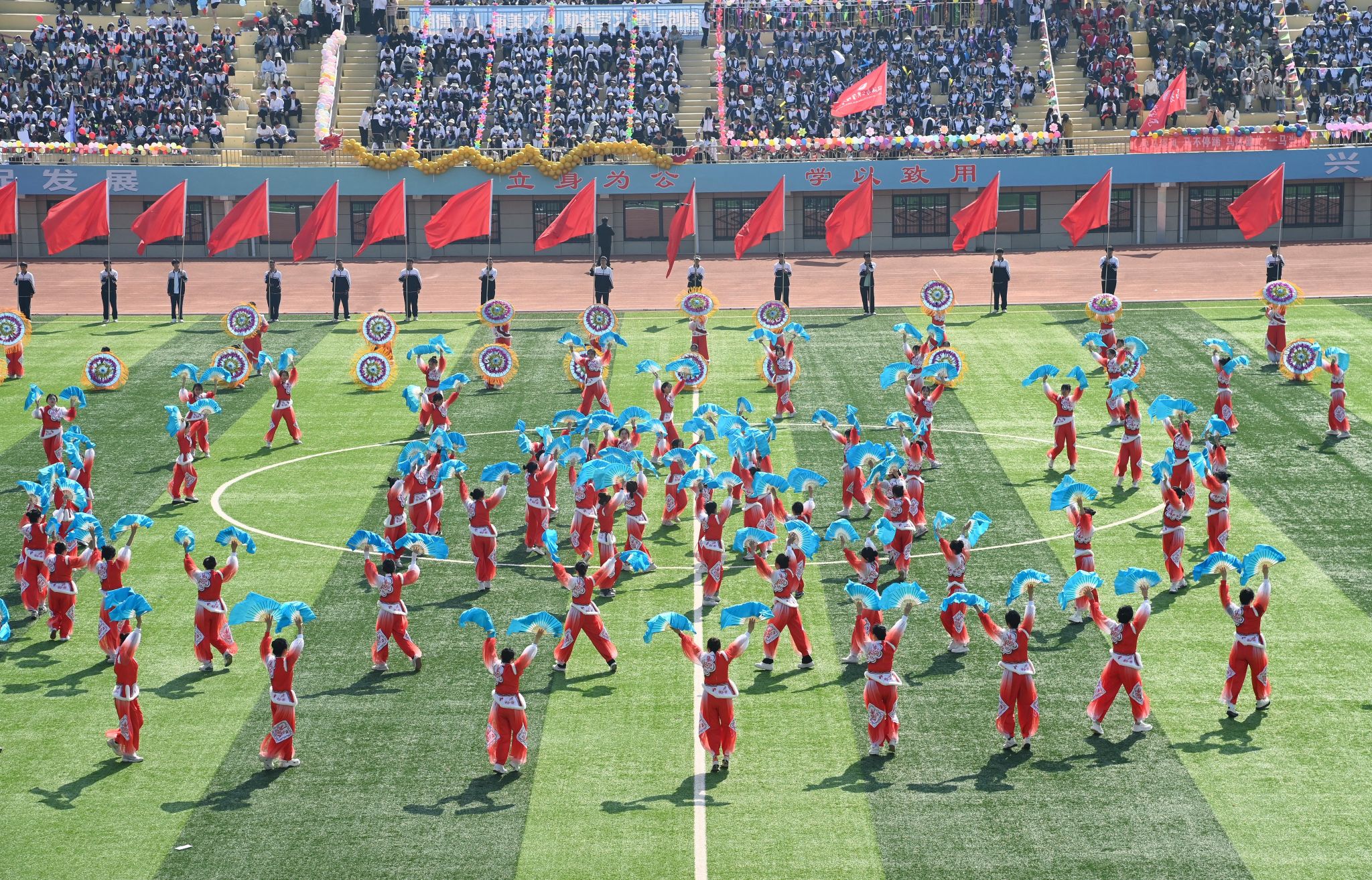运动员、裁判员退场后,体育学院、化工学院、数计学院、经管学院、校工会排练的大型文体表演将运动会开幕式推向高潮。陕北腰鼓浑厚雄壮,热情澎湃;广播体操表演青春洋溢,活力四射;武术棍方阵潇洒自如,气势如虹;伞舞飘逸灵动,光彩夺目;秧歌表演锣鼓喧天,热闹非凡。精彩纷呈的节目展示了米兰师生积极进取、朝气蓬勃的精神风貌。