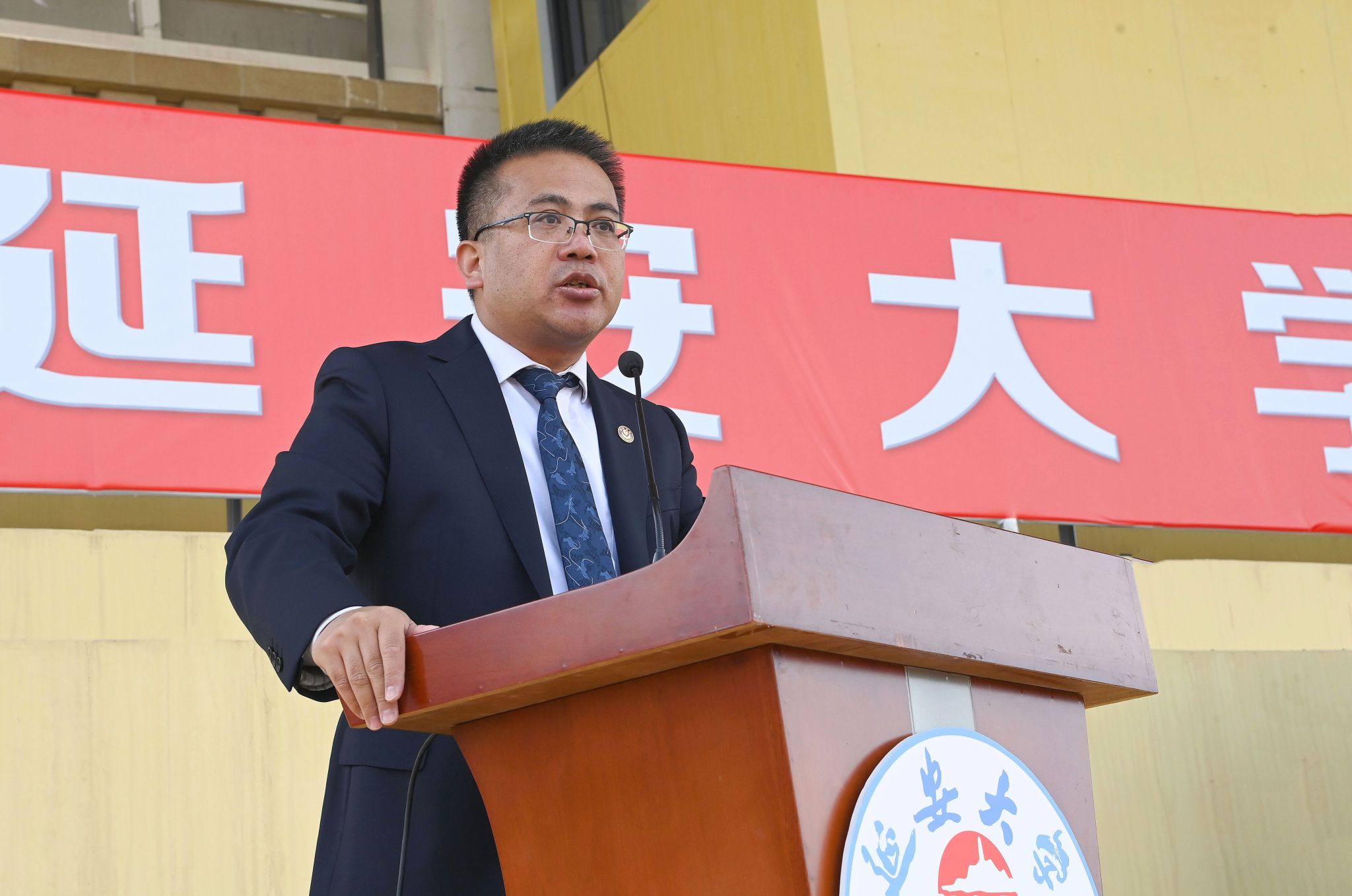 谭虎娃在闭幕词中表示,本届运动会上,全体运动员用顽强拼搏、追求卓越、超越自我的表现,践行了“更快、更高、更强、更团结”的奥林匹克精神,为我们呈现了一次精彩纷呈、鼓舞人心的运动盛会。运动会中,多项校运动会纪录被打破,各学院呈现了良好的道德文明风尚,充分展示了延大学子昂扬向上的精神风貌和青春力量,彰显了延大师生自信自强、蓬勃向上的精神品质。希望同学们继续发扬永不服输、一往无前的竞技精神,勤学苦练,励志成才,努力成长为具有延安精神特质、堪当民族复兴大任的时代新人。