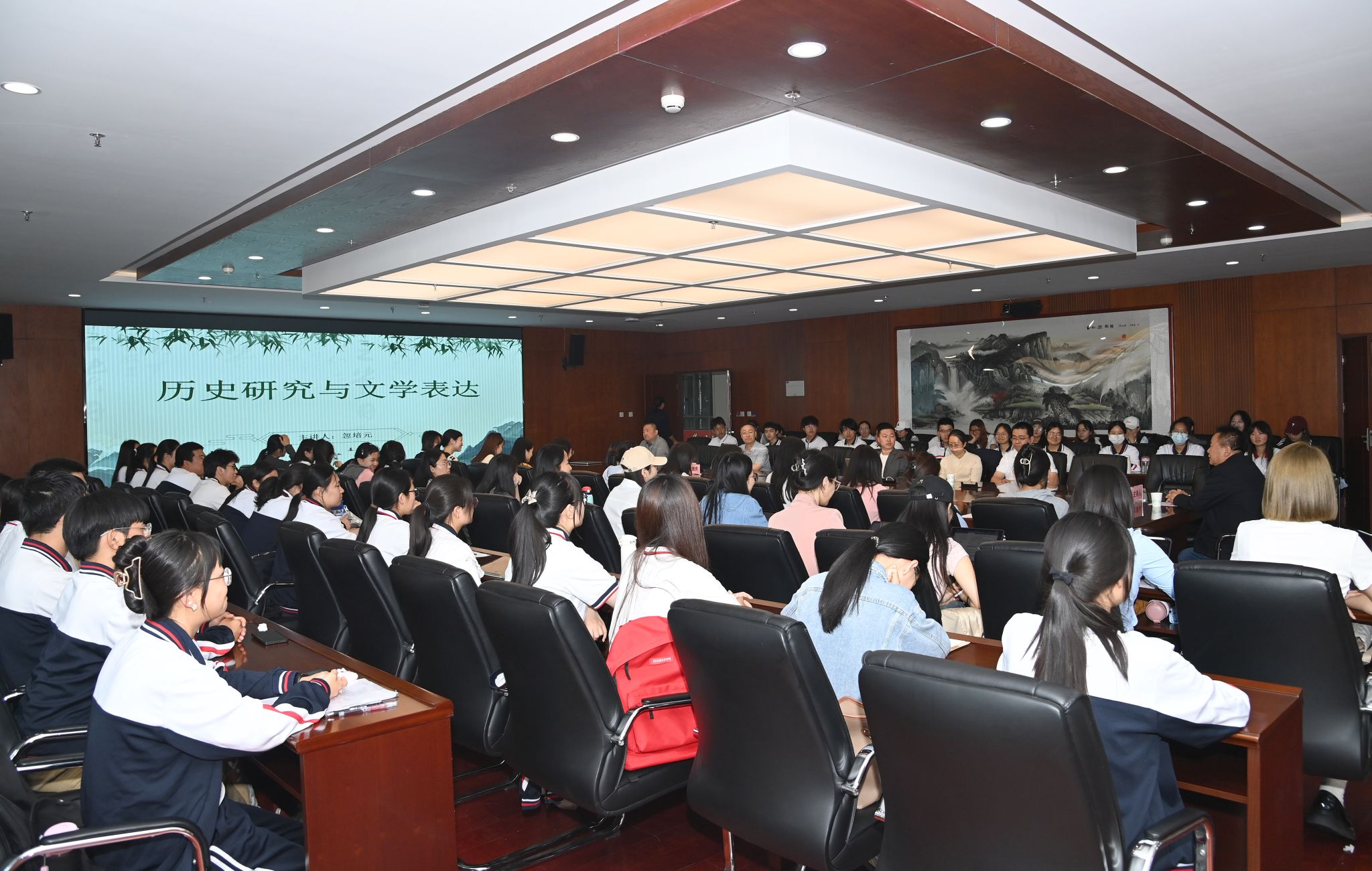 王俊虎在总结时表示,忽培元长期担任地方党政领导,多年来坚持文学创作、书画研习和经济社会综合调研,笔耕不辍,成果丰硕。此次应邀回母校开展学术讲座从当代大学树立理想信念、坚持以人民为中心的写作立场、如何看待文学的歌颂与暴露、青年文学爱好者如何成长成才等问题展开,学术视野开阔,尤其结合自己的创作历程推心置腹分享自己的心路历程,相信对于当代大学生与文学爱好者的健康成长大有裨益。