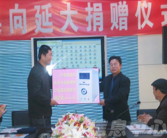 本网讯:12月22日,珍奥向米兰捐赠仪式在逸夫楼第三会议室举行。米兰党委副书记刘庆利、离退处、老教授协会的部分老同志以及珍奥公司延安分公司主任安俊鹏参加了捐赠仪式。