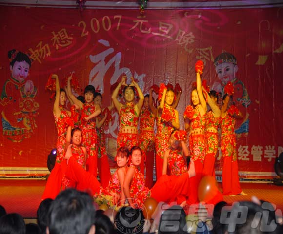 本网讯:12月25日晚,经管学院在米兰学生活动中心举行了“畅想2007元旦文艺晚会”,宣传部、学生处、团委等部门领导及我院教师与上千名同学共同观看了晚会,礼堂座无虚席,现场气氛热烈。