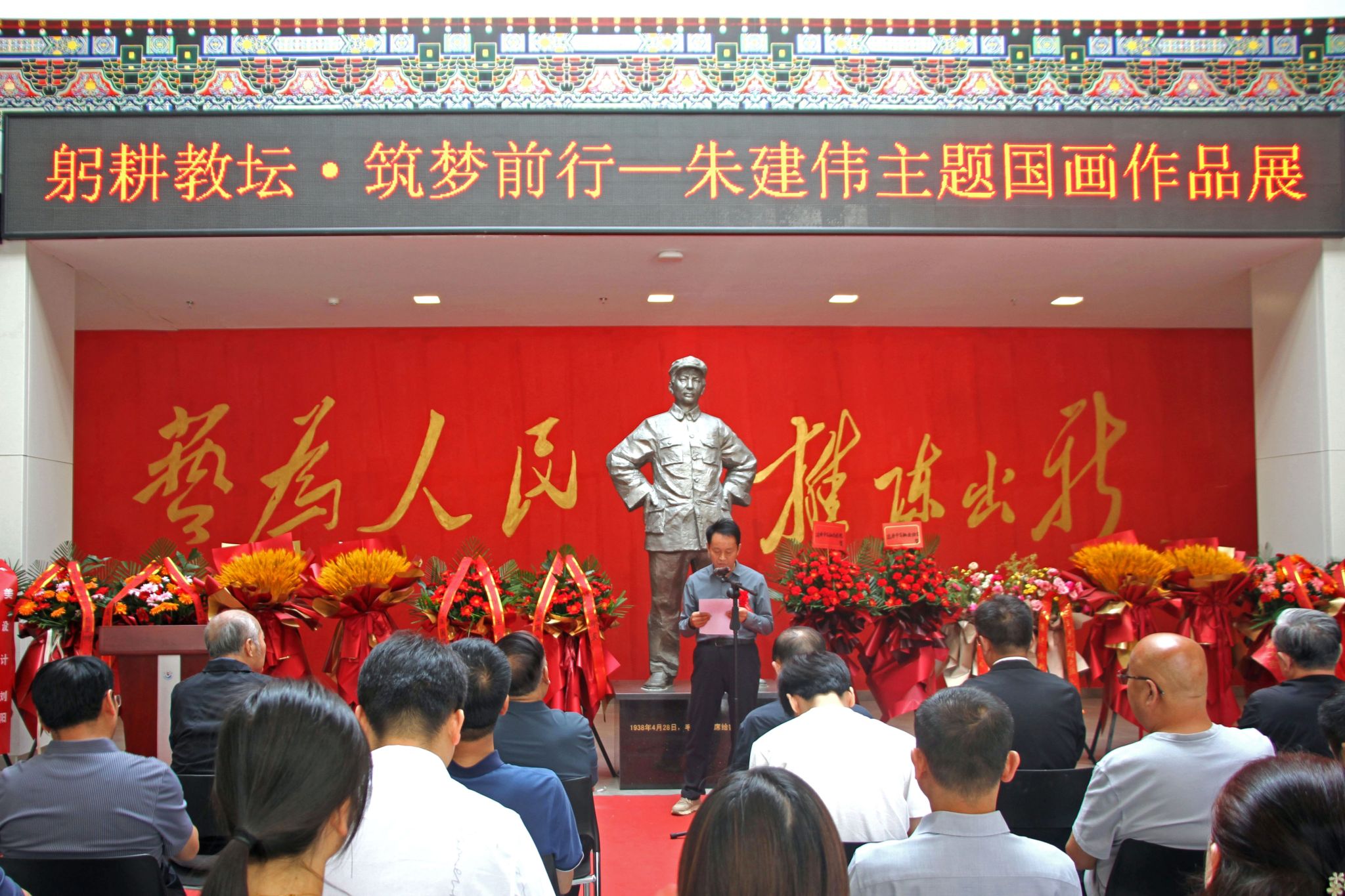 鲁迅艺术学院常务副院长王文权在致辞时首先表达了对社会各界对鲁艺学院大力支持和关心关爱的感谢。他表示,本次展览紧跟时代、贴近群众,有生活、有思想,充满民族风骨与精神,希望鲁艺师生坚定艺术理想,传承鲁艺薪火,用手中画笔擎画新时代的新气象。程征在发言时表示,朱建伟的作品立足于传统,勇于创新,扎根红色延安,在火热的现实生活中汲取和找寻艺术表达的素材。刘丹表示朱建伟刻苦努力,认真钻研,艺术语言面貌新颖,备受画界关注。朱建伟在致答谢辞中简要介绍了自己的从艺、从教历程以及举办本次作品展的缘由,他表示本次画展是自己二十余年作品的一个阶段总结,是学生阶段的守正传统、教学工作阶段的语言探索、延安主题性题材的确立,并表示将继续努力,用手中画笔创作出更多洋溢时代气息、广受人民喜爱的美术作品。