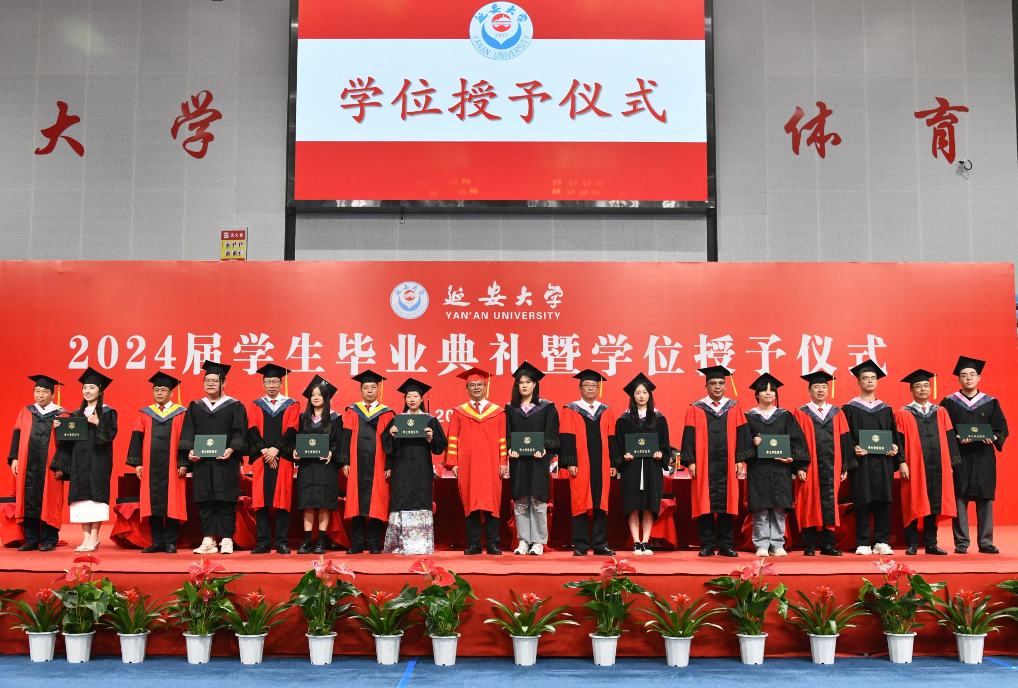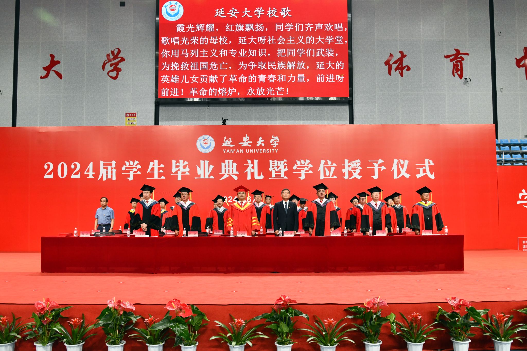 “延大呀,社会主义的大学堂……努力学习团结奋斗,把延安精神发扬。”学位授予仪式前,全体师生起立,共同唱响《米兰milan官方网站校歌》,用歌声传承延大情、弘扬爱国志。
