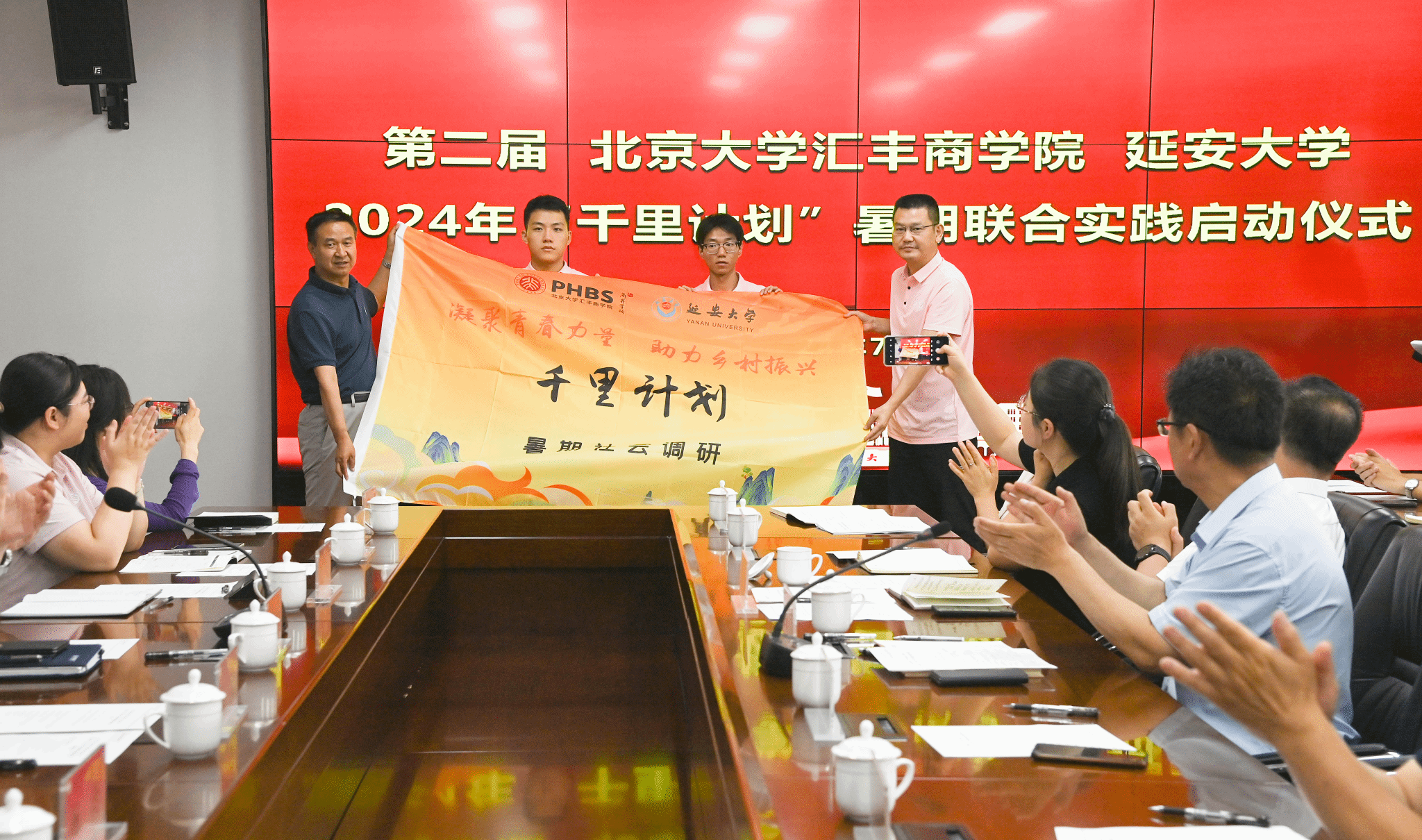 本网讯 7月8日下午,第二届北京大学汇丰商学院和米兰milan官方网站2024年“千里计划”暑期联合实践启动仪式在米兰新城校区行政楼六楼会议室举行。北京大学校务委员会副主任(原副校长)、汇丰商学院创院院长海闻,北京大学汇丰商学院党委书记、副院长任颋,党委副书记、副院长张凡姗,西安市乡村发展公益慈善基金会秘书处成员,米兰党委副书记吕达,组织部、学工部、乡村发展研究院、经济与管理学院等相关部门负责人及参加本次实践活动的北京大学、米兰milan官方网站学生出席仪式。启动仪式由北京大学汇丰商学院学生李玥青主持。