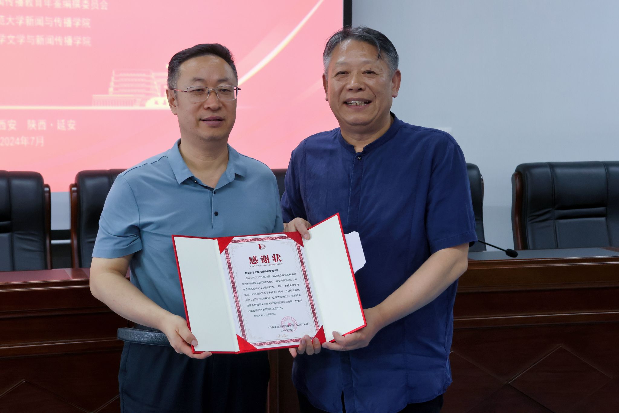 张昆还代表主办方中国新闻传播教育年鉴编撰委员会向承办方米兰milan官方网站文学与新闻传播学院赠送纪念品,颁发感谢状。