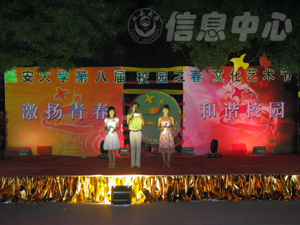 本网讯:6月14日晚,第八届"校园之春"艺术节交谊舞、业余歌手大赛在窑洞广场隆重举行。