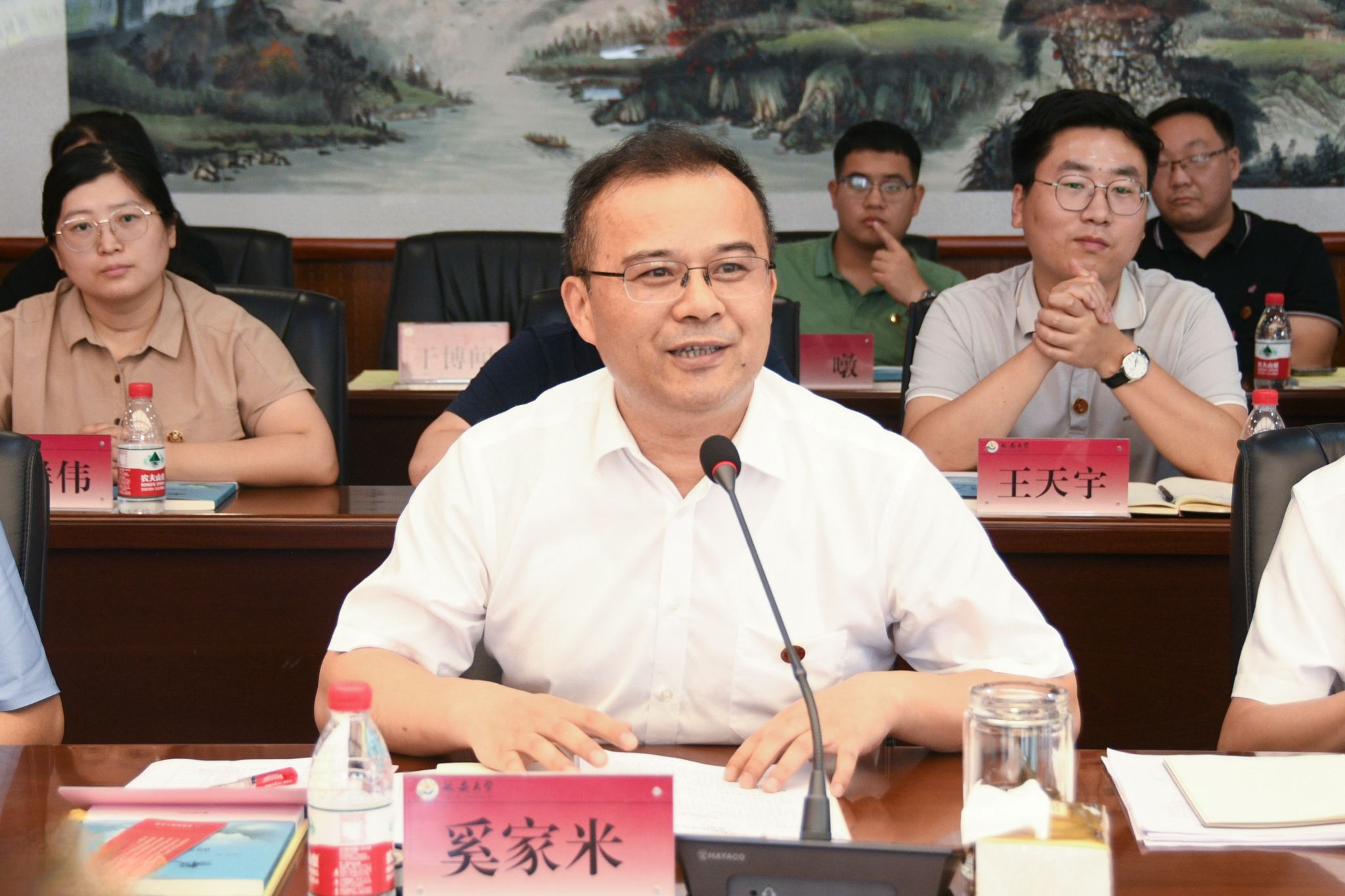 奚家米在讲话中首先代表学校向全体新进教师表示热烈欢迎并致以教师节的祝贺。随后,他用“历史光荣、贡献巨大、问题很多、前景光明”四句话概括介绍了学校的基本情况,并从汇聚人心、凝聚力量,增强以学生发展为中心的理念,增强主动服务、开放办学三个方面介绍了学校改革发展的思路举措。最后,奚校长对新进教师提出四点期望:一是坚定理想信念,尽快融入延大;二是陶冶道德情操,涵养师德师风;三是练就扎实学识,增强育人本领;四是勤修仁爱之心,厚植育人情怀。他强调,各职能部门要增强服务意识,关心青年教师的工作学习,努力为青年教师创造良好的工作生活环境,搭建职业成长的平台,使他们能安心进行教学科研工作,为学校发展作出积极贡献。