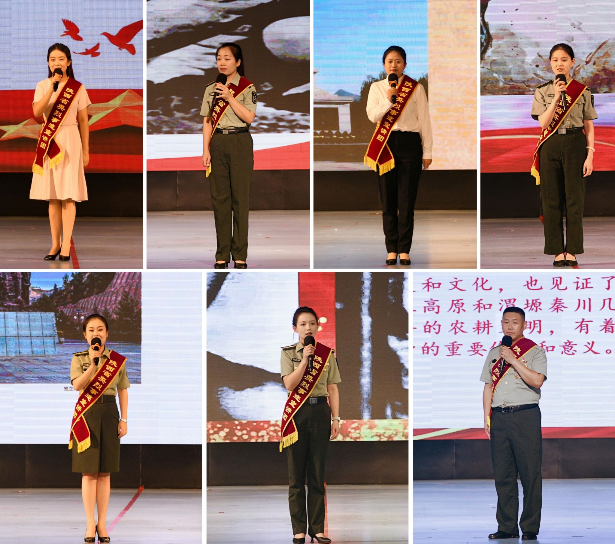 来自陕甘边照金纪念馆、延安市四八烈士陵园、渭南市渭华起义纪念地管理中心、扶眉战役烈士陵园、神木市神府革命纪念馆、延安市志丹陵园管理所、渭南市永丰革命烈士陵园的7名宣讲团成员李梦芳、高涛涛、张婵、任芳、胡嘉琪、李南南、屈宏亮怀着对英雄先烈崇高的敬意,生动讲述了用生命和信仰抒写青春的刘林圃、英勇赴难的温济厚、为人民服务的典范张思德、刘志丹与习仲勋的革命情谊、长征中的陕北党员贾拓夫、战斗英雄王学礼和刘永成、义无反顾冲锋在前的烈士张天才等老一辈革命家、先烈们的英雄故事。宣讲员们用感人的事例、朴实的语言、真挚的情感,生动阐释了战争年代革命先烈的忠诚本色、担当魄力、为民情怀和奉献精神,深深打动了在场的每一个人,为师生上了一堂生动的爱国主义教育课和“大思政”课,教育引导广大青年学子用红色精神沁润思想灵魂,以英烈故事激发奋进力量,让红色基因和革命薪火代代相传。