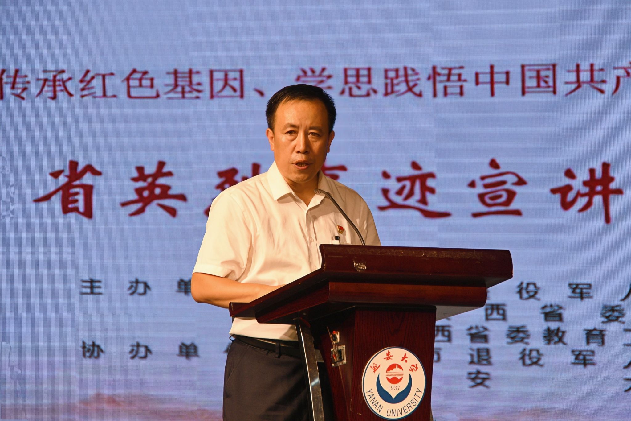 本网讯 为深入贯彻落实习近平总书记关于烈士褒扬工作重要指示精神,讲好英烈故事,传承红色基因,9月19日下午,由陕西省退役军人事务厅、中共陕西省委宣传部、中共陕西省委教育工委联合主办的“传承红色基因 学思践悟中国共产党人精神谱系”陕西省英烈事迹宣讲活动走进米兰milan官方网站。宣讲会在杨家岭校区大礼堂举行。