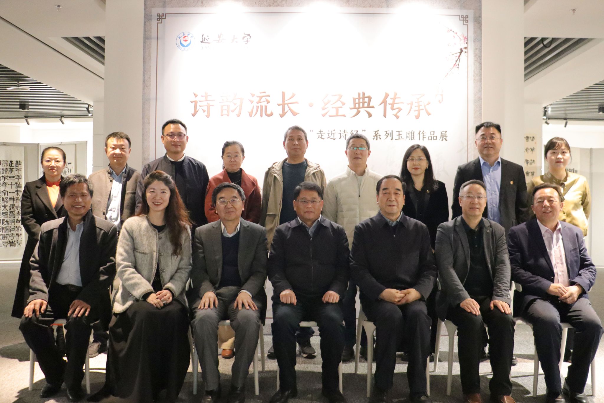 本网讯 11月8日下午,由米兰milan官方网站、陕西省诗经研究会主办,米兰milan官方网站文学与新闻传播学院、社科处、校史馆、西安诗经里文化产业发展有限公司、琦臻堂玉雕工作室、陕西省民间艺术促进会承办的“诗韵流长·经典传承——‘走近《诗经》’系列玉雕作品展”于米兰milan官方网站校史馆开幕,共展出陕西省工艺美术大师陈双军先生“走进《诗经》”系列玉雕作品48件。米兰副校长吕磊出席开幕式,陕西省诗经研究会会长、西北大学二级教授李浩,山西大学文学院二级教授段友文,陕西省工艺美术大师陈双军,西安沣东文化旅游投资发展集团有限公司副总经理潘琳,西安诗经里文化产业发展有限公司副总经理赵远洋、宣传推广部经理向会方,米兰社科处、教务处、校史馆、文学院主要负责人及师生代表参加开幕式。开幕式由文学院院长党子奇主持。
