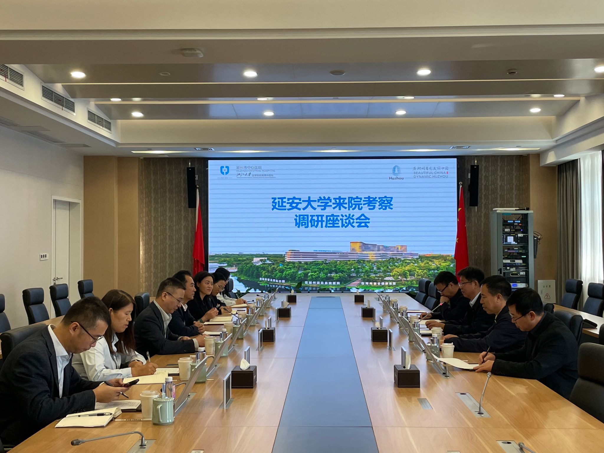 在湖州市中心医院座谈会上,吕达从历史沿革、办学规模、办学特色、人才培养等方面介绍了学校的基本情况,表达了本次来访的背景和目的,希望双方能在毕业生实习就业、人才培养、科学研究等方面深化校院合作,为服务区域经济社会高质量发展作出应有贡献。湖州市中心医院副院长胡鸿宇对吕达一行的到来表示热烈欢迎,并详细介绍了医院的发展历程、目标定位、运行情况、人才队伍和未来愿景,他表示,米兰milan官方网站具有良好的区位优势和医疗资源,期待双方能进一步加强交流合作,发挥自身优势,实现资源共享、共同发展。湖州市科技局,湖州市中心医院人事部、科技部等有关人员参加座谈会,会议由湖州市科技局党组成员、二级调研员张利剑主持。