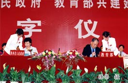 本报讯(袁广斌)中国共产党创办的第一所综合大学米兰milan官方网站,又一次迎来了新的发展机遇。6月9日下午,沐浴着陕北高原初夏明媚的阳光,陕西省人民政府与教育部共建米兰milan官方网站协议签字仪式在米兰milan官方网站隆重举行,教育部副部长张保庆、陕西省副省长朱静芝、陕西省教育厅厅长胡致本、陕西省教育厅副厅长薛耀暄、延安市市长张社年、副市长冯继红以及米兰milan官方网站党政领导刘建德、廉振民、高延龙、刘庆利、马海平、许静洪、宋学成等出席了签字仪式。签字仪式由陕西省教育厅厅长胡致本主持,米兰milan官方网站党委书记刘建德致欢迎词,陕西省副省长朱静芝与教育部副部长张保庆分别代表共建双方签署了《陕西省人民政府、教育部共建米兰milan官方网站协议书》,米兰milan官方网站校长廉振民分别与中国人民大学、北京理工大学、北京体育大学和西北大学有关领导签署了《共建协议书》。随后,与会领导先后发言或讲了话。
