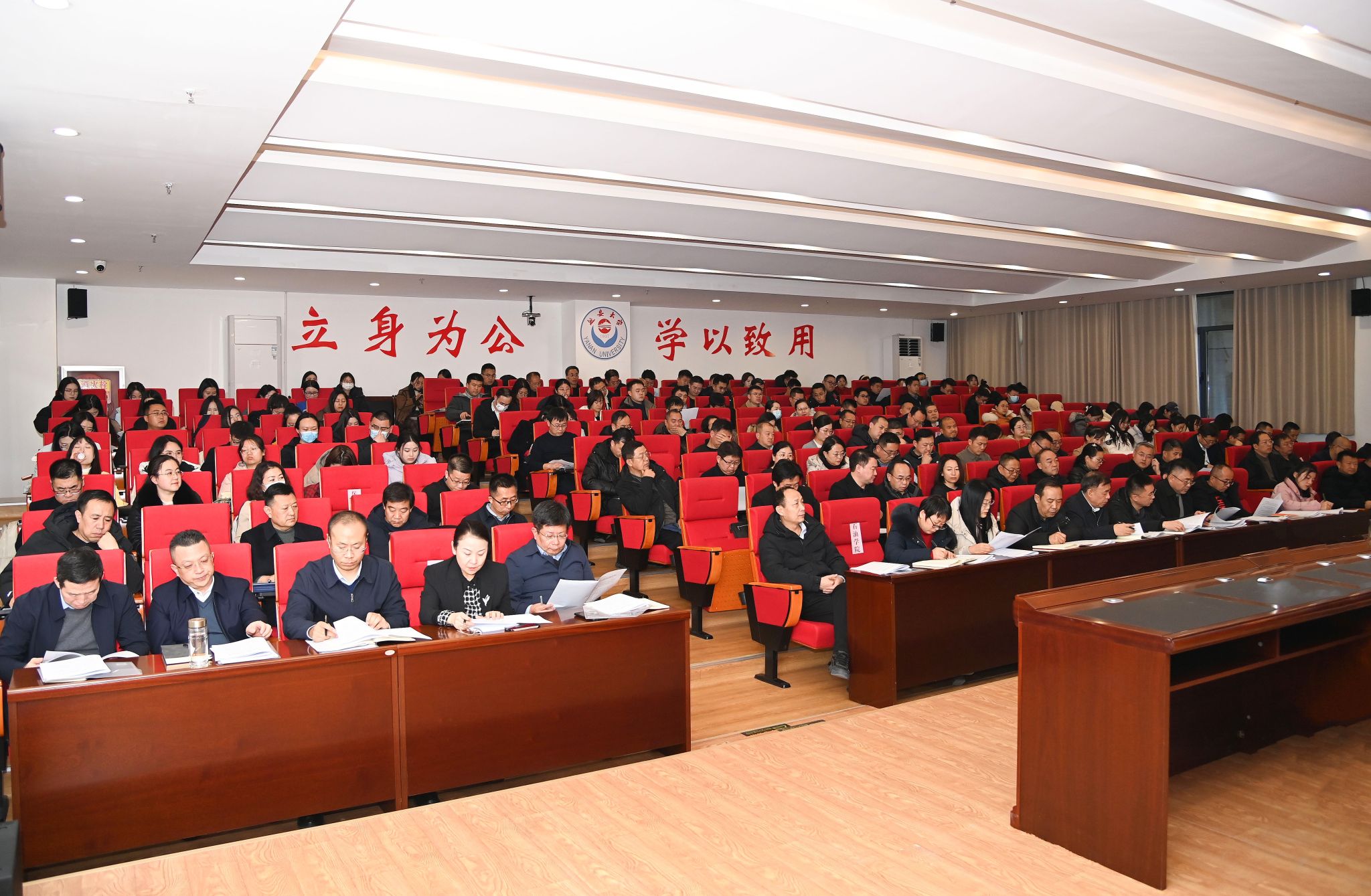校党委委员、各部门主要负责人,各二级学院党委书记、院长、副书记、团委书记、思政专员,全体专职思政课教师、辅导员以及学生代表等190余人参加会议。