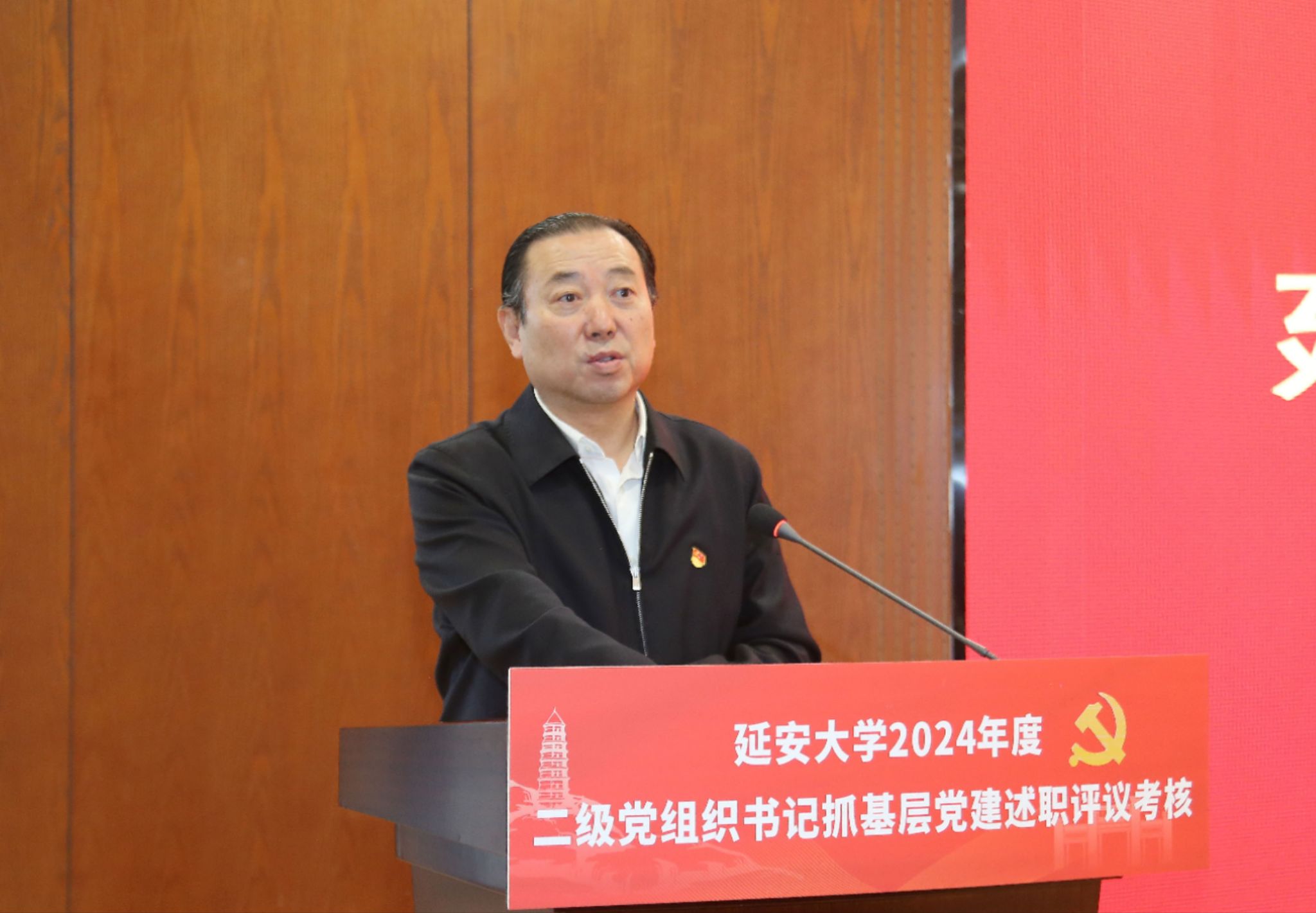 高子伟强调,做好2025年党建工作,要全面加强党的政治建设,严格执行党委领导下的校长负责制,落实落细学院党委会、党政联席会议等议事决策规则,严格请示报告制度,严明政治纪律和政治规矩。要坚持不懈用习近平新时代中国特色社会主义思想培根铸魂,严格落实意识形态工作责任制,深化“理论武装攻坚计划”,落实好“第一议题”制度,切实用党的创新理论武装干部师生头脑。要持续增强党组织政治功能和组织功能,坚持用延安精神强党建,完善制度机制,全面推进“延安精神强党建‘三一’工程”和“分类指导、争先进位”三年行动计划,进一步完善干部选育管用全链条机制,推动党建与立德树人深度融合。要纵深推进全面从严治党,巩固深化党纪学习教育成果,深化拓展干部作风能力建设和清廉延大建设,持之以恒正风肃纪,营造风清气正的校园政治生态。