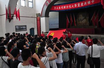 在杨家岭革命旧址,谭虎娃副教授就中共七大的历史背景与渊源、党的纯洁性建设问题,向同学们进行了讲解。现场教学结束后,举行了学生党员宣誓仪式。