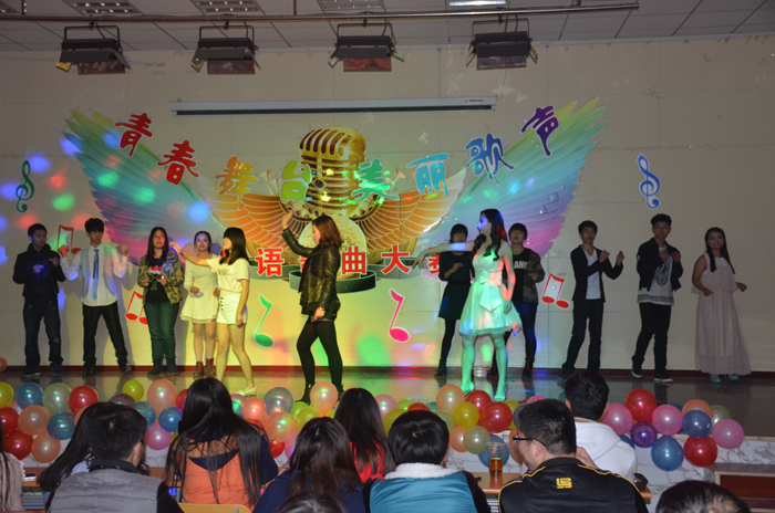 本网讯 11月18日晚,外国语学院在外院小礼堂举行了以“青春舞台,美丽歌声”为主题的外语歌曲大赛。外籍专家Essic、学生处副处长王彦杰、团委办公室主任曹巍、外国语学院党委副书记王随卷、副院长李艳和日语教师戴丽担任了本次大赛的评委。校学工部部长高峰、外语学院院长吴卫东、党委书记董振文,外籍专家Micah、日籍专家柳生真、全体辅导员和班主任,以及200余名学生观看了本次大赛。