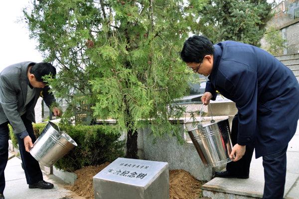 主题教育活动在高昂激扬的国歌声中拉开了序幕,学生代表向革命先烈敬献了花圈,仙鹤岭公墓有限公司董事长宣永红讲了话,讲解员讲述了动人的红军故事。高峰部长和马延龙书记亲手种植生命纪念树,同学们向烈士献花鞠躬致敬以表达对烈士的缅怀之情。祭扫完毕,六名同学在北京知青园围绕“生命的价值”这一主题进行了慷慨激昂、饱含热情的演讲,高峰部长和马延龙书记也讲了话。