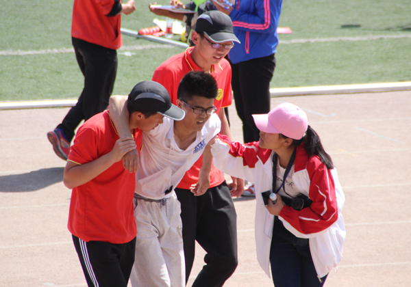 体育学院学生党员志愿者身着鲜艳亮丽的红色志愿者服,成为赛场上最明亮最温暖的存在。他们主要进行长跑项目服务、运动会后勤保障、赛场与周边环境与秩序维护以及各种突发情况处理。运动会期间,体育学院学生党员志愿者们为所有长跑项目的运动员提供饮用水与水海绵进行物理降温,并及时协助体力不支的同学进行身体恢复;为维护赛场、看台及周边环境与秩序,每天赛事结束后协助清洁工作人员进行赛场清理;为保障各项比赛的正常运行,维修过裁判员的帐篷,维持过看台的秩序,并协助维护赛场设施。学生党员志愿者脸上洋溢的微笑,向所有人宣告有他们的地方就有着安心、放心和开心。运动会结束后,学生党员志愿者何琴说:“这是一次学习和成长的机会,很庆幸自己能够为同学们服务,尤其是长跑项目中能够为运动员们贡献一份力量觉得很幸福,以后的志愿服务活动一定还会参加。”