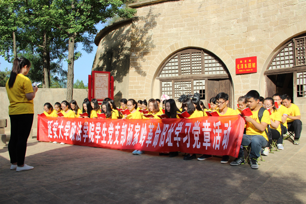 本网讯 为庆祝中国共产党成立95周年,扎实开展“两学一做”学习教育,7月1日上午,政法学院学生党员、学院党委副书记李红金、学生党支部书记张元等共50余名中共党员来到杨家岭革命旧址,在毛主席旧居前开展“庆祝党的生日,革命旧址学习党章”主题党日活动。