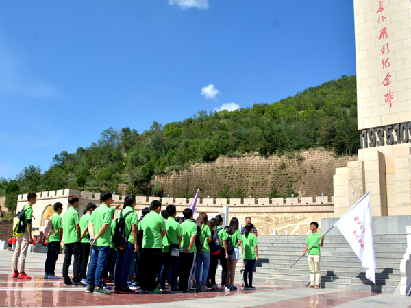 本网讯 8月26日,在长征胜利80周年到来之际,经管学院全体辅导员和红色卓越班第三期学员50余人在学院党委书记姜庆、党委副书记冉晓辉的带领下,前往中央红军长征宣告胜利的地点——吴起胜利山和志丹县刘志丹烈士陵园,缅怀先烈,开展了“重温革命先辈历程 弘扬长征精神”活动,纪念长征胜利80周年。