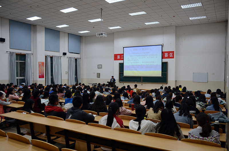 本网讯 5月2日晚,为了贯彻落实学校创新创业大赛文件精神,进一步培养大学生创新创业意识,提升创新创业能力,外国语学院在第六阶梯教室举行了大学生创新创业大赛报告会暨工作推进会,外国语学院院领导、班主任及部分师生300余人参加了本次报告会暨工作推进会。科研处技术转移中心主任贺知章作了题为《外语专业大学生创新之路》的报告,会议由学院党委书记董振文主持。