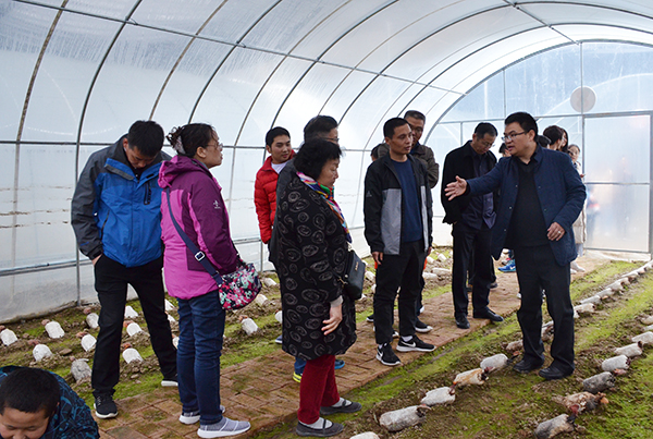 在黄龙县崾岘乡马蹄掌村香菇种植基地,王延峰、任桂梅、贺晓龙等专家就大棚和灵芝种植存在的问题及改进措施向有关人员作了反馈。