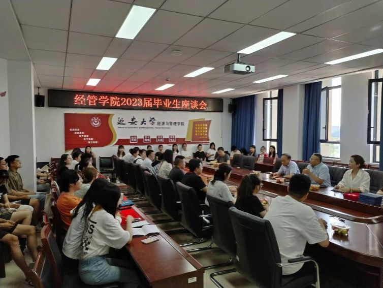 本网讯 6月30日下午,经济与管理学院在515会议室召开2023届毕业生座谈会。全体院领导、毕业生班主任、2023届毕业生代表参加座谈会。此次活动还邀请学院2021届5位选调生代表参加,座谈会由学院党委副书记冉晓辉主持。
