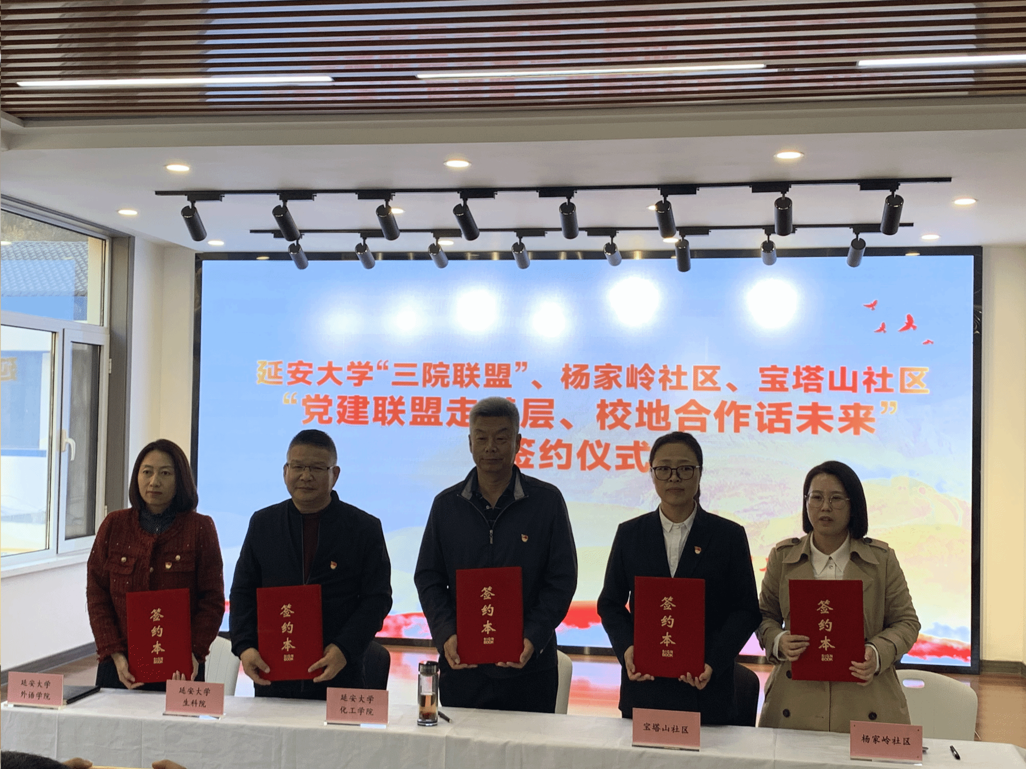 接着,米兰milan官方网站“三院联盟”、杨家岭社区、宝塔山社区“党建联盟走基层、校地合作话未来”签约仪式在宝塔山社区会议室举行。仪式由梁艳主持。各单位党建负责人介绍了本单位特色和亮点党建工作,签订了《“党建联盟走基层 校地合作话未来”合作协议》,一致表示将充分发挥各方资源优势、调动各方积极因素,为搭建实践育人平台、助力基层社会治理、构建特色党建机制贡献力量。