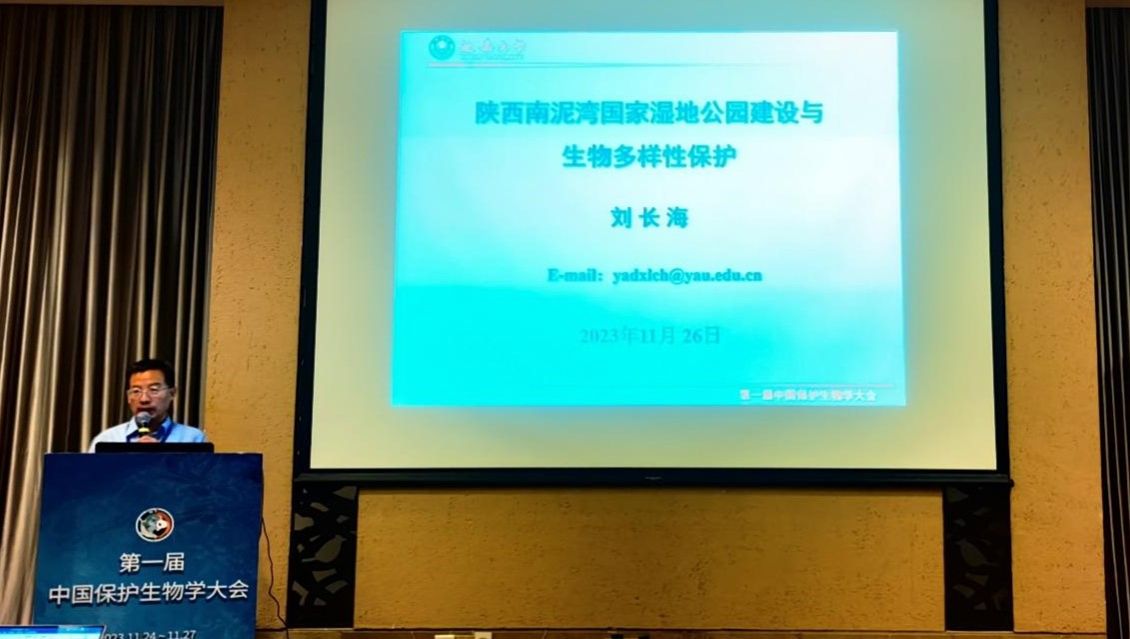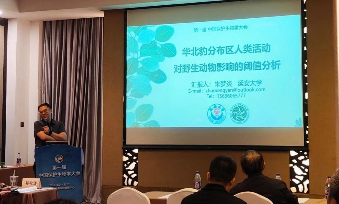 本次大会有中国科学院动物研究所康乐院士、中国科学院地理科学与资源研究所于贵瑞院士、中国科学院水生生物研究所桂建芳院士、中国科学院动物研究所魏辅文院士、中国科学院昆明植物研究所孙航院士等多位知名专家学者出席。大会设有特邀报告及10个专题分会场报告。刘长海教授做了题为《陕西南泥湾国家湿地公园建设与生物多样性保护》的报告。朱梦炎博士做了题为《华北豹分布区人类活动对野生动物影响的阈值分析》的报告。