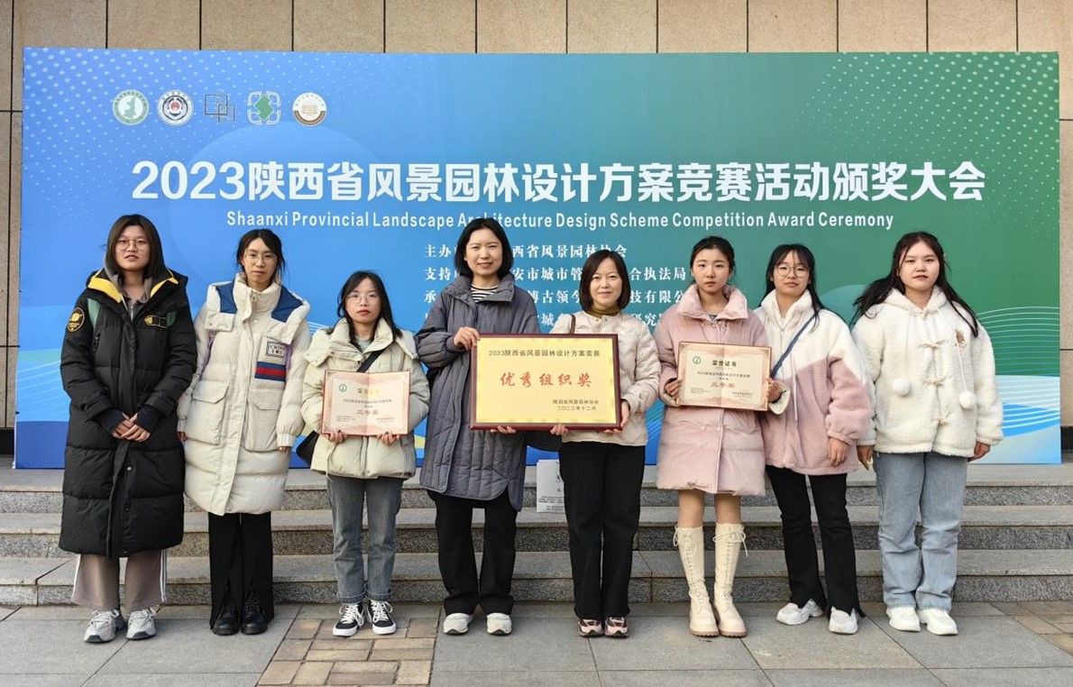 本网讯 12月2日,陕西省首届风景园林设计方案竞赛颁奖大会在西安建筑科技大学举行。本次竞赛活动共有769名选手报名参赛,提交了194套设计方案,米兰生命科学学院园林系高洁老师和强方方老师指导园林专业学生朱静、党碧荣、贾兴月负责的设计方案《流光之境》和蔡梅、张柏宇、胡佳佳负责的设计方案《智灵绿野公园》均荣获学生组三等奖,米兰同时被大会组委会授予“优秀组织奖”荣誉。