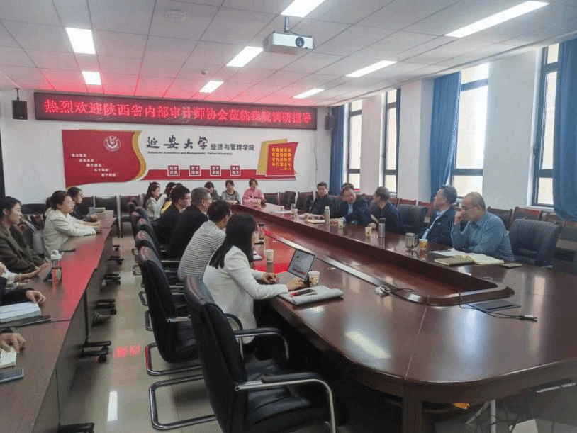 本网讯 4月24日下午,陕西省内部审计协会会长张海成、副会长杨民社、延安市内部审计协会会长杜延军、秘书长李金勇来米兰经管学院调研。米兰milan官方网站总会计师范育琳、财务处处长谢岗、财务处各科室科长、经济与管理学院王晓军副教授、王梅梅副教授、张焕平副教授,以及2023级MPAcc专业学生参加会议。