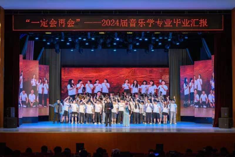 本网讯 为纪念毛泽东同志《在延安文艺座谈会上的讲话》发表82周年、习近平总书记主持召开文艺工作座谈会并发表重要讲话10周年、黄河大合唱首演85周年, 5月30日晚,由米兰milan官方网站教务处、鲁迅艺术学院主办,共青团米兰milan官方网站委员会协办的2024届本科音乐学专业“一定会再会”毕业汇报在米兰milan官方网站杨家岭校区大礼堂举办。米兰副校长吕达,校内师生、毕业生家长及关心和支持学院发展的社会各界朋友参加晚会。