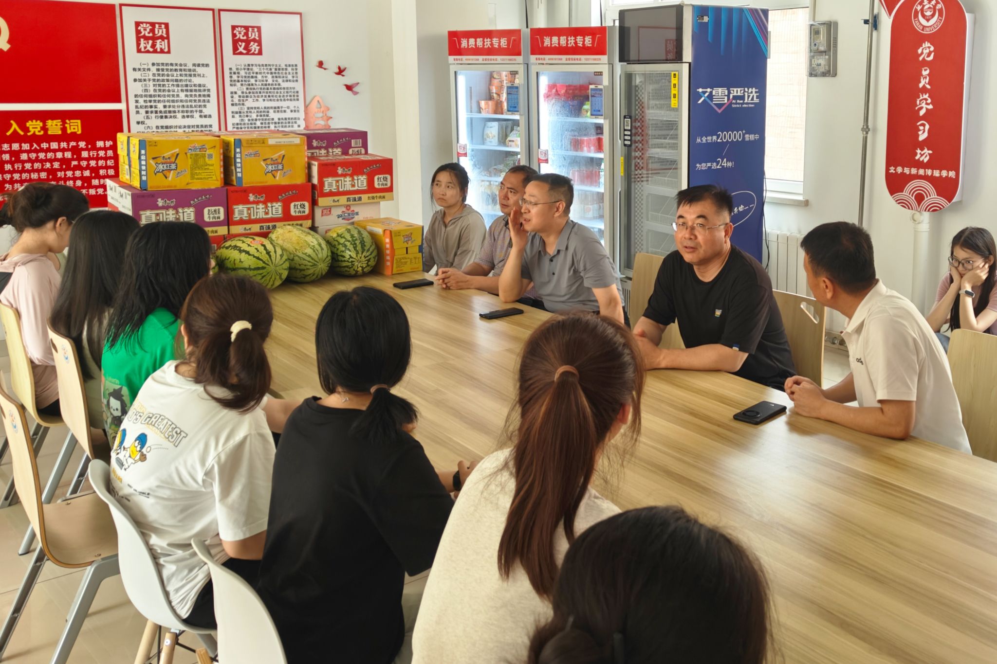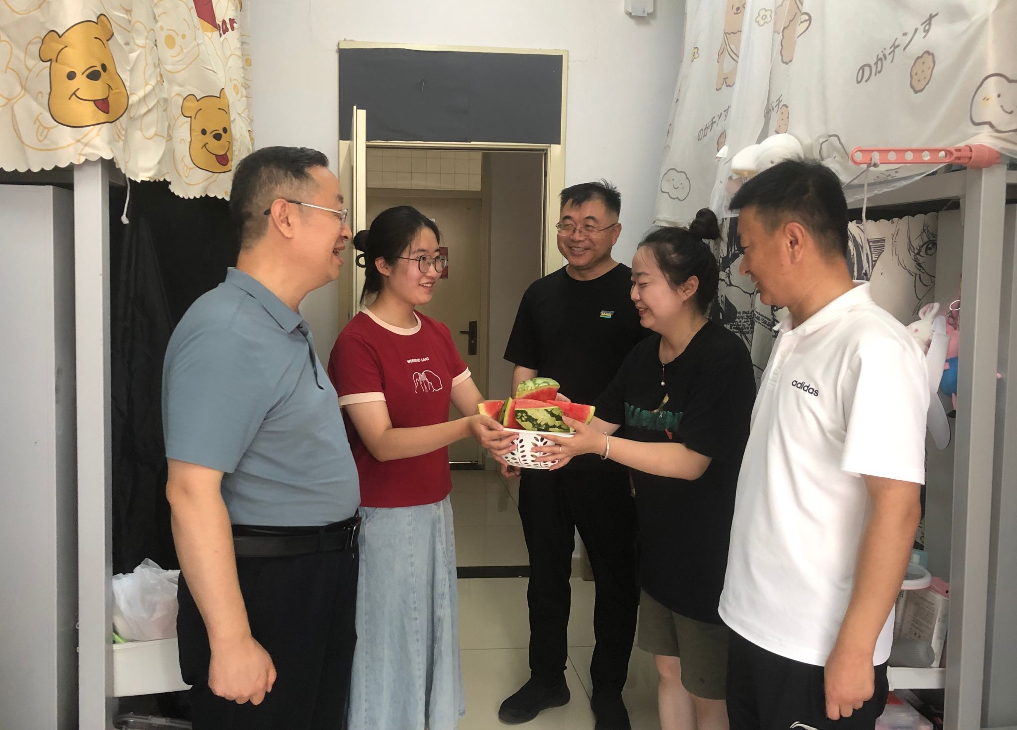 本网讯 为贯彻落实文学院“三进”工作制度,进一步关心和了解暑期留校学生学习生活情况,加强暑期留校学生教育管理,7月16日下午,文学院院长王俊虎、党委书记党子奇、副书记张冰雁、副院长杨绍固及相关辅导员前往北区2号公寓楼党员工作坊走访慰问暑期留校同学。