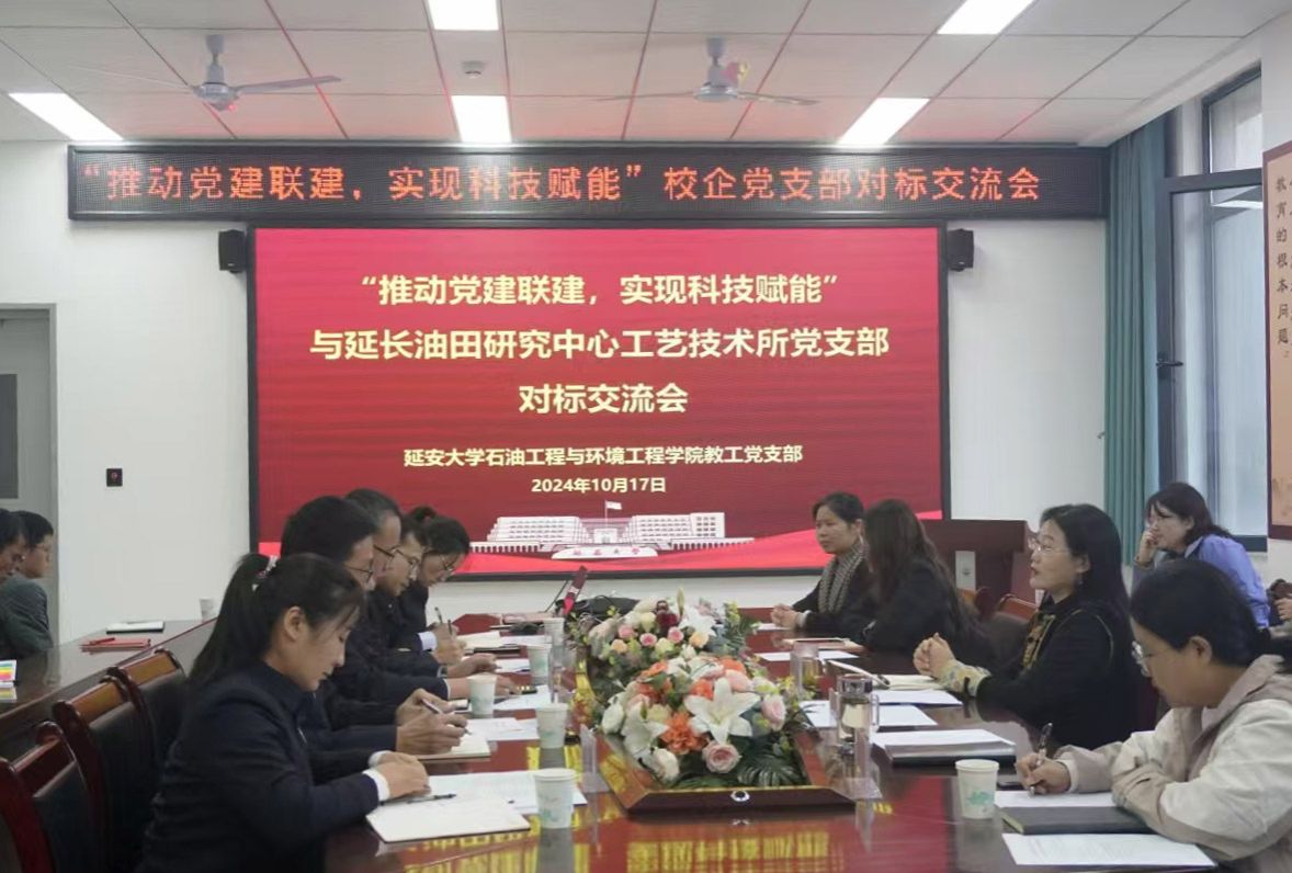 本网讯 推动党建联建,实现科技赋能,10月17日上午,延长油田研究中心工艺技术研究所党支部书记、所长赵亚杰及全体支委会成员来石油学院进行党建对标及业务交流,石油学院党委书记常佩艳、副书记牛保明、石油工程教工党支部书记王丽影等各党支部委员及骨干教师代表参加了会议,会议由常佩艳书记主持。