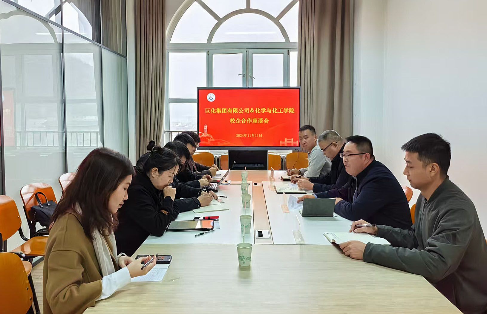 本网讯 为进一步加强校企合作,促进毕业生高质量就业。11月11日上午,化工学院与巨化集团有限公司在化工大楼1020会议室召开校企合作座谈会。巨化集团机关总部人力资源服务中心主任王涌泉、人事经理张君明、电化厂人力资源部长杨君、桥麦互联科技(南京)有限公司项目总监徐海慧、桥麦互联科技(南京)有限公司项目经理谢逸文,化工学院党委书记赵芝瑞、思政专员李学周及辅导员张哲豪参加座谈会。座谈会由赵芝瑞主持。