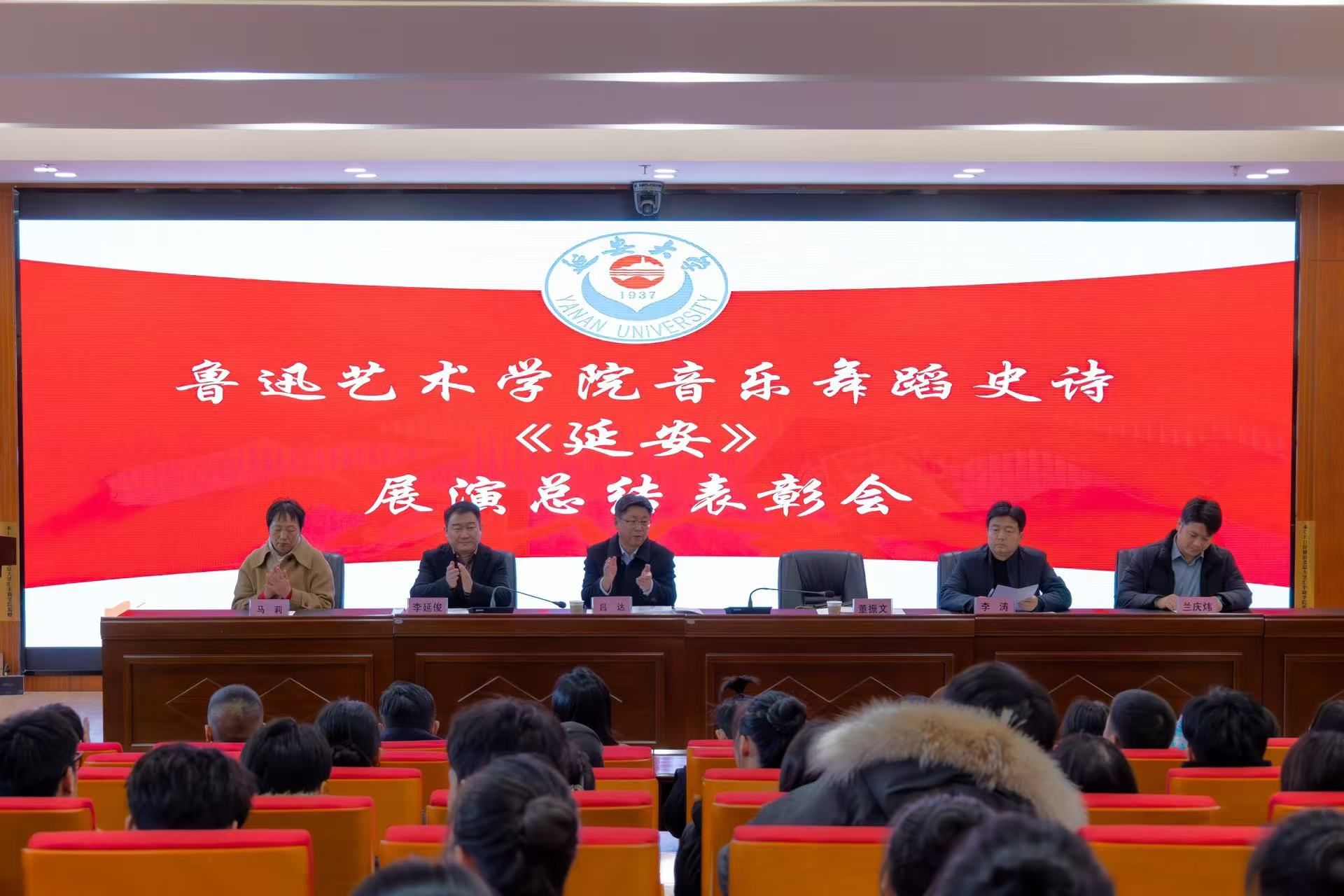 会上,李延俊对《延安》剧巡演、展演的圆满成功作阶段性总结。他回忆了《延安》剧的创作发展历程,肯定了主创团队、全体师生在《延安》排演过程中的无私奉献和辛勤付出,感谢学校对《延安》剧创排及演出的大力支持。他提到,新时代鲁艺人要凝心聚力,发扬老鲁艺精神,以更加饱满的热情和坚定的信念,全力打造标志性的新时代文艺精品。同时,要坚持以剧育人,以演促教,以此次《延安》剧成功展演为新起点,不断总结经验,开拓创新,将艺术实践育人工作推向新的高度。