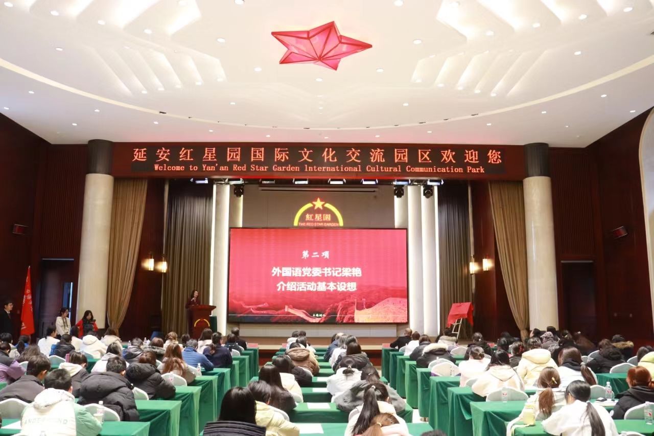 本网讯 为深入推进党建与业务的有机融合,构建符合外语学科专业实际的“党建+业务”新机制新举措,进一步提升人才培养质量,11月27日下午,外国语学院与延安红星园国际文化交流园区合作签约暨特色党建小组、红星宣讲队开营仪式在红星园会议厅举行。红星园董事长、部分干部,外国语学院领导班子成员和师生代表共计120余人参加活动。活动由外国语学院院长梁润生主持。