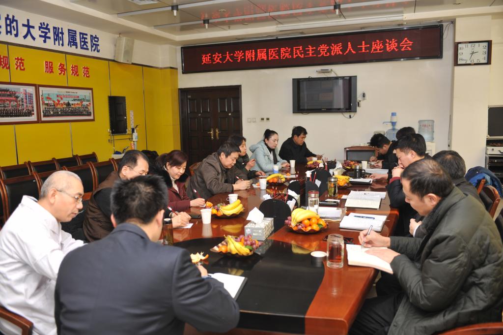 本网讯 1月27日下午,附属医院行政楼四楼会议室举行2015年民主党派人士座谈会。院长李小龙、党委书记周秦、副院长孙伟民、党委副书记赵洁、李建雄,组织科及5个民主党派代表数10人出席会议。会议由周秦书记主持。