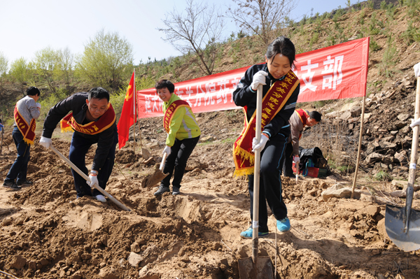 本网讯 附院东关分院药剂检验党支部组织支部所辖科室正式党员、预备党员、积极分子、共青团员、农工民主党派、民革及无党派人士一行30余人,前往宝塔区河庄坪镇河庄坪村开展“义务植树共建美丽延河、造福人民共享绿色家园”为主题的植树劳动。