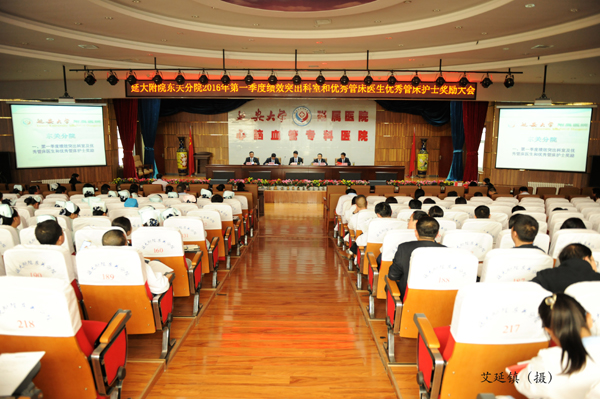 行政副院长薛志宏宣读了对第一季度绩效突出科室和优秀管床医生、优秀管床护士奖励的决定,心血管内科四病区等16个科室、闫育平等17名医生和吴春春等20名护士分别获得奖励,并上台领奖。