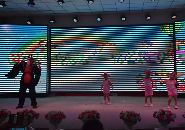文艺演出节目丰富多彩,有舞蹈、歌曲独唱、合唱、表演唱、角色剧等,开场节目是大二班的《庆祝六·一》、《清早听到公鸡叫》集体歌舞。活泼优美的舞姿,激动四散的歌声,惟妙惟肖的表演,博得了全场观众阵阵热烈的掌声和喝彩声。随后各班幼儿表演了精彩纷呈的文艺节目,中班小朋友的舞蹈《捉泥鳅》淘气可爱,观众忍不住拍手叫好,大一班的才艺展演《小苹果》一下子把大家带入了动感世界,都不自觉得随小演员的鼓点节拍扭了起来。