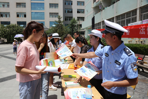 本网讯 6月24日上午,米兰保卫处联合延安市法院、延安市公安消防支队、宝塔区司法局、宝塔区食药局、宝塔区工商局、北京炜衡律师事务所共同开展了“弘扬法治、舞动青春”法律服务进校园活动。