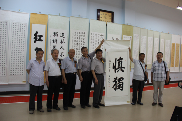 陕西省老教授协会会长吕九如教授代表陕西师范大学致辞,离退处处长史和平代表学校讲话,两校互赠书画作品,最后大家兴致勃勃地观赏了书画作品。本次书画联展,浓缩了两校离退休干部真、草、隶、篆、行、山水、花鸟、写意、篆刻等多种类别近百幅书画艺术作品。